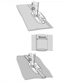 Примечание: На лицевой стороне изделия будет двойная строчка. Если необходимо получить одинарную строчку на изделии, сострочите лицевые стороны ткани вместе.