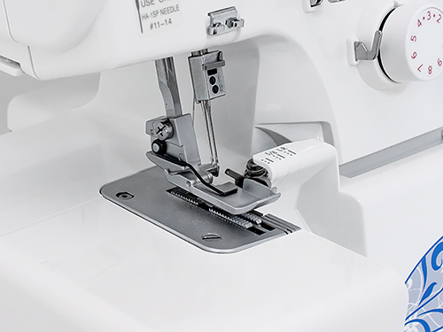 Оверлок позволяет регулировать натяжение нити, длину стежка, ширину обрезки, дифференциал транспортера и давление лапки. Эти параметры помогут оптимально настроить машину и выполнить идеальный шов.